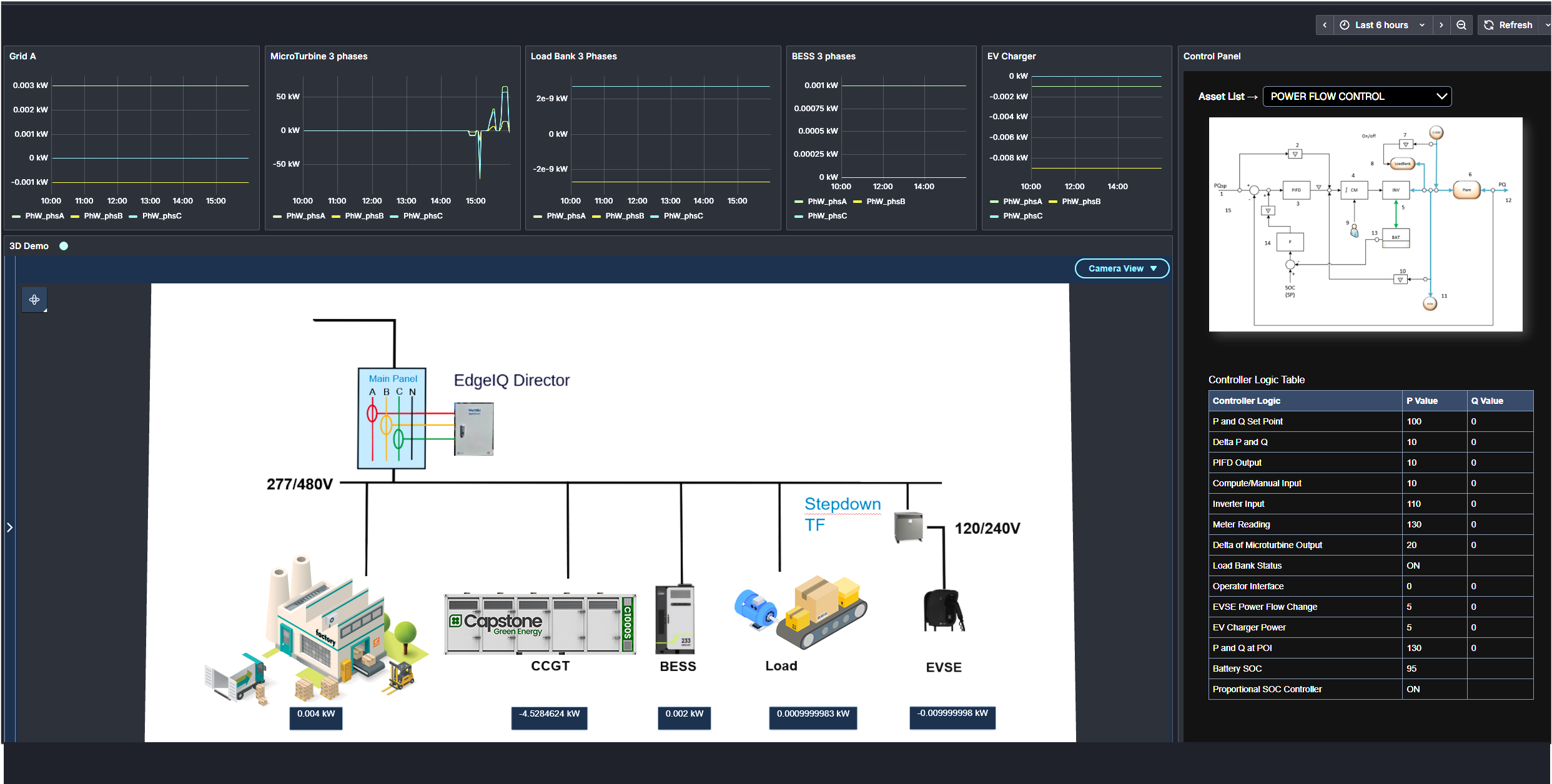 Real-time dashboard of our HQ microgrid demo showing the C1000S, BESS, load bank, and EV charger under WattAI’s intelligent control.